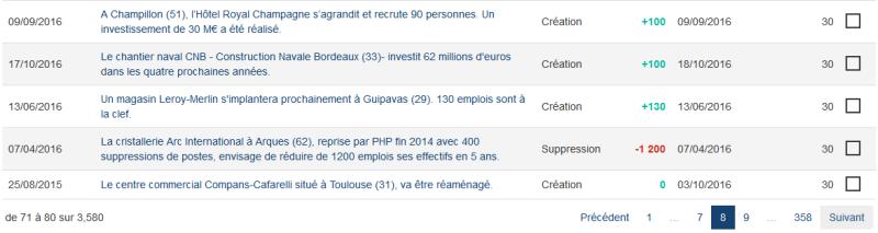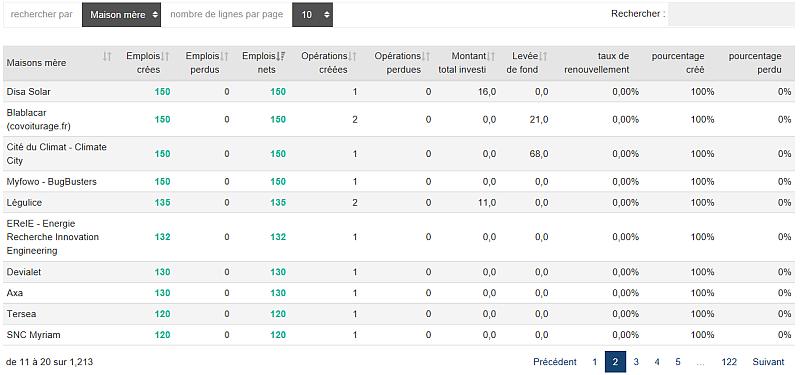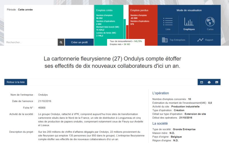 Sélectionner un secteur ou un territoire depuis 2009 et classer les entreprises présentes par nombre d'emplois créés ou supprimés, ou par montants investis : rien de plus facile avec notre nouvelle fonctionnalité "Top entreprises". Une façon originale de repérer des entreprises en croissance passées inaperçues - ou en sens inverse de metre en évidence des établissements fragiles.